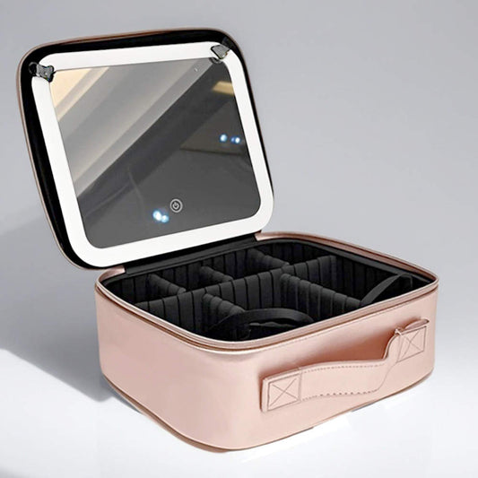 Förðunartaska m/ LED spegil / Lazerhúðað PU leður