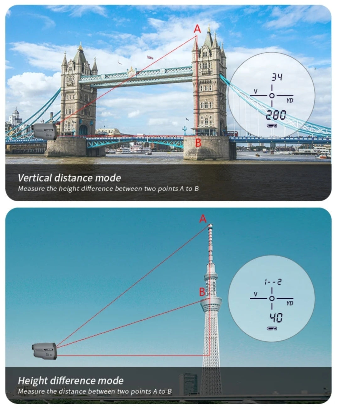 Nákvæmur og fjölhæfur fjarlægðarmælir frá Artbull sem sameinar fimm mismunandi mælingahama fyrir golf, útivist, byggingarframkvæmdir, fjallgöngur og veiðar. Hann mælir bæði beinar vegalengdir, hæðarmun og halla með mikilli nákvæmni og skýrum LCD skjá. Mælirinn er lítill og nettur þannig þægilegt sé að ferðast með hann ásamt því að hann er vatnsvarinn og auðveldur í notkun.
