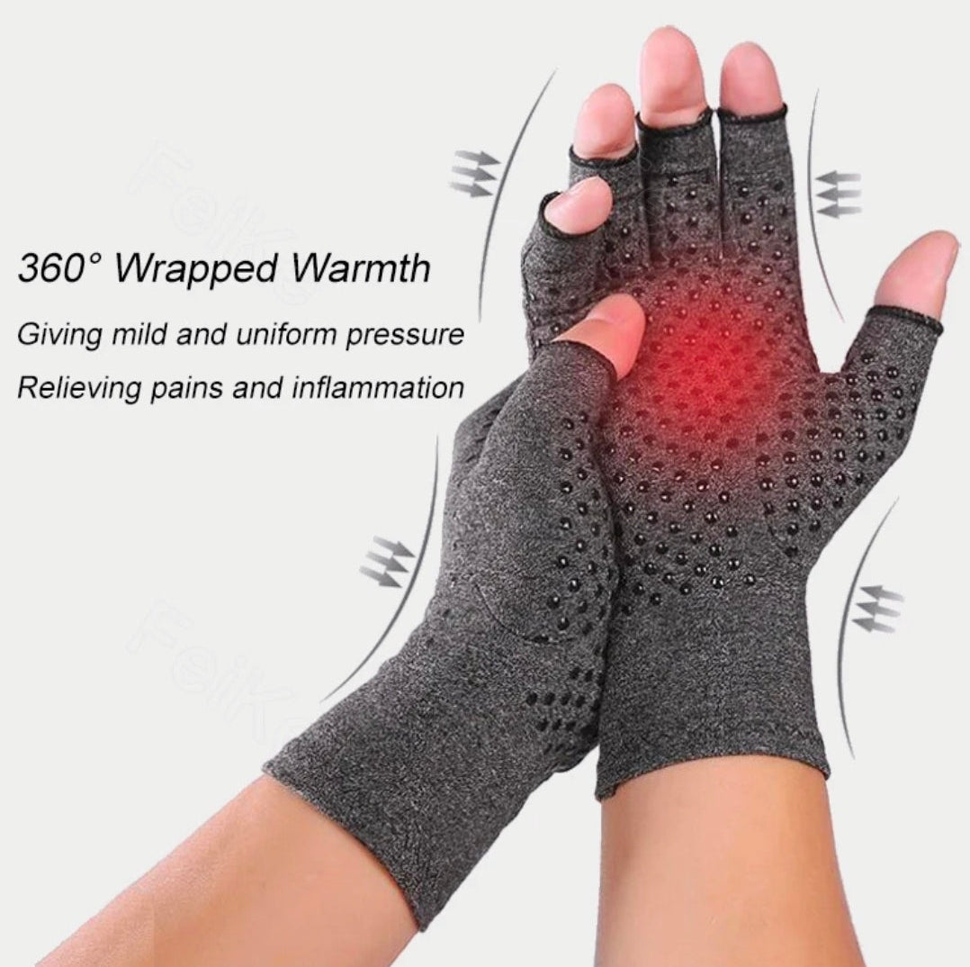 Einfaldir hlutir eins og að opna krukku eða tikka á lyklaborð geta verið krefjandi fyrir fólk sem þjáist af meiðslum, bólgu eða gigtarsjúkdómum. Algeng einkenni t.d liðagigtar eru þroti, sársauki, stirðleiki og minni hreyfigeta eða sveigjanleiki. Ef það er ekki meðhöndlað á réttan hátt getur það varað í mörg ár og versnað með tímanum. Þetta leiðir til langvarandi sársauka og vanhæfni til að sinna hversdagslegum venjum. Léttu á stingandi sársauka, náladofa og/eða vöðvaeymsli með þrýsti-gigtarhönskunum okkar. Þeir eru sérstaklega hannaðir til að styðja við vöðva og liðamót, létta stirðleika og eymsli í úlnlið, lófum og fingrum.