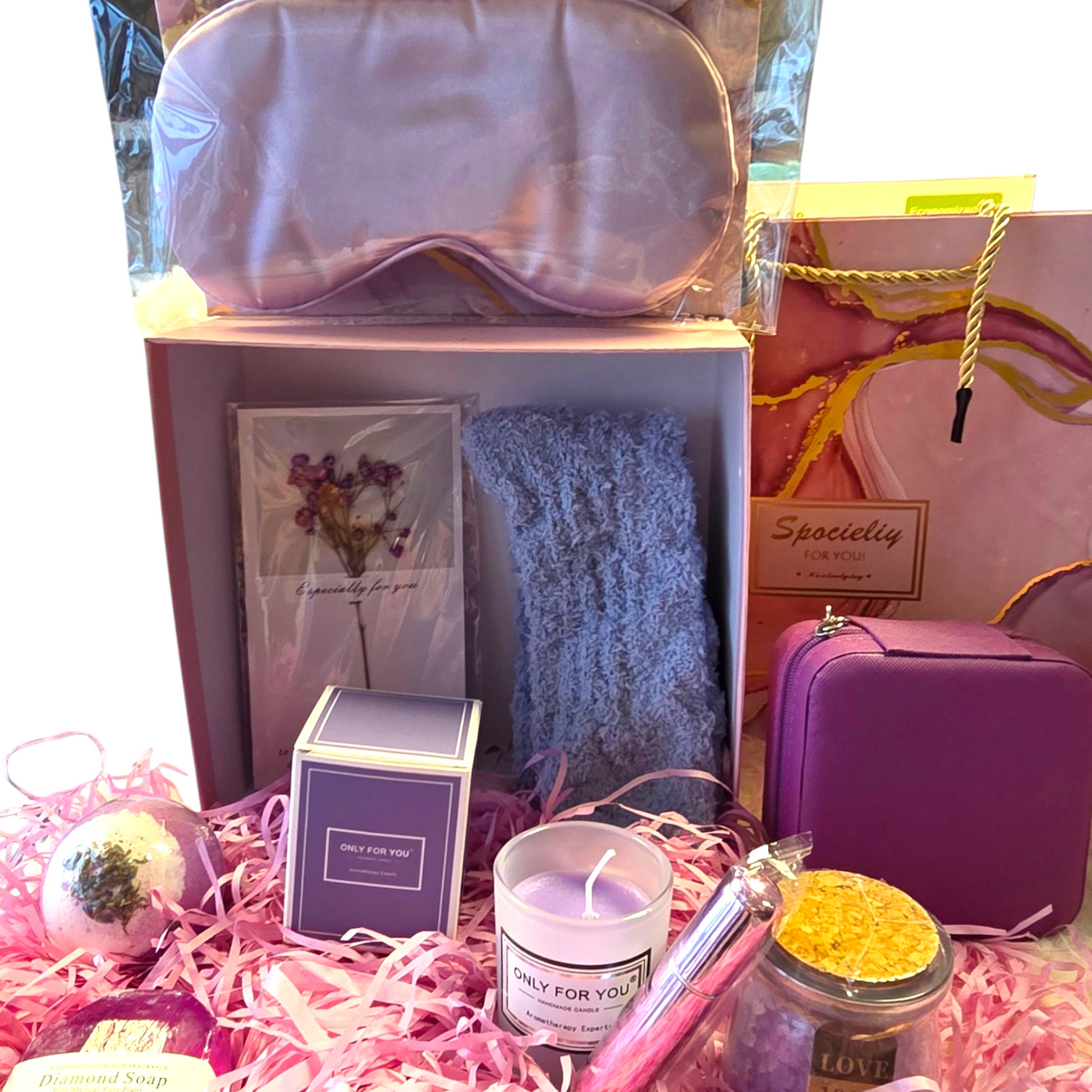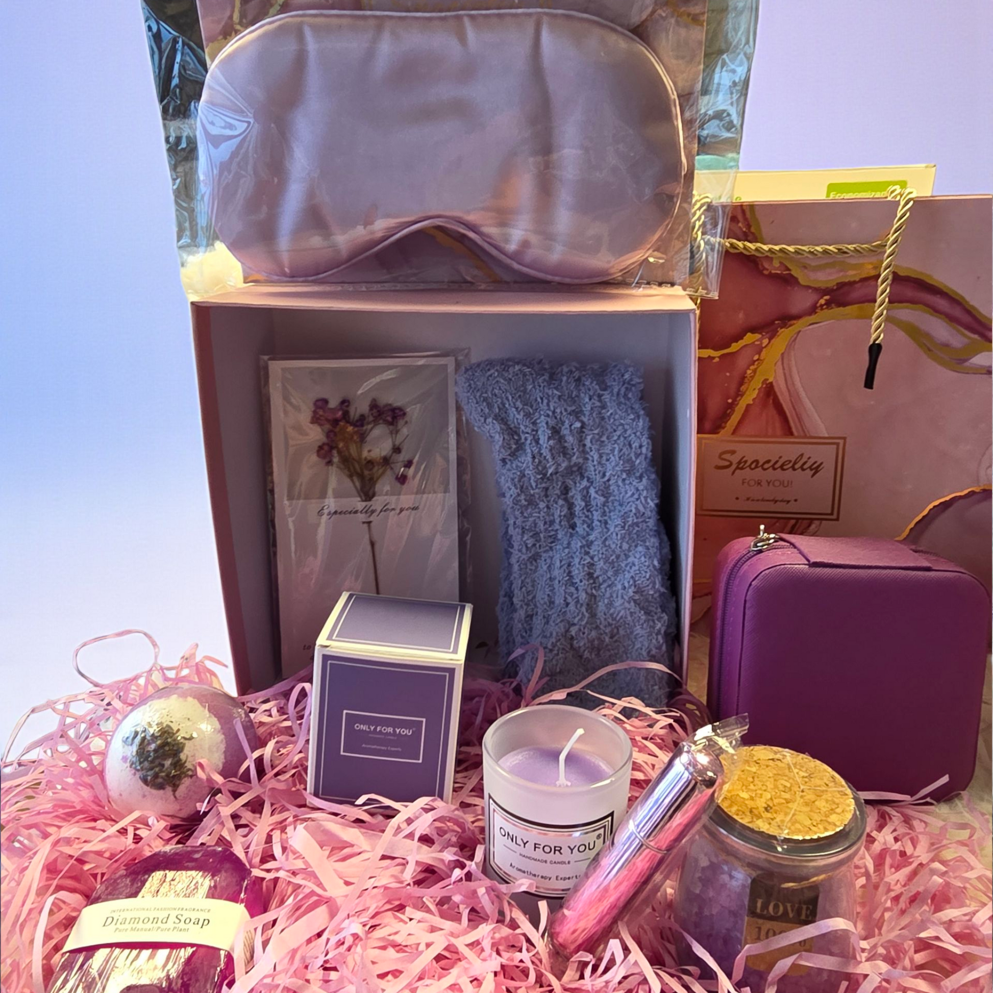- Baðsalt, demantsápa og baðbomba í lavender ilm sem umbreyta baðinu í spa-upplifun