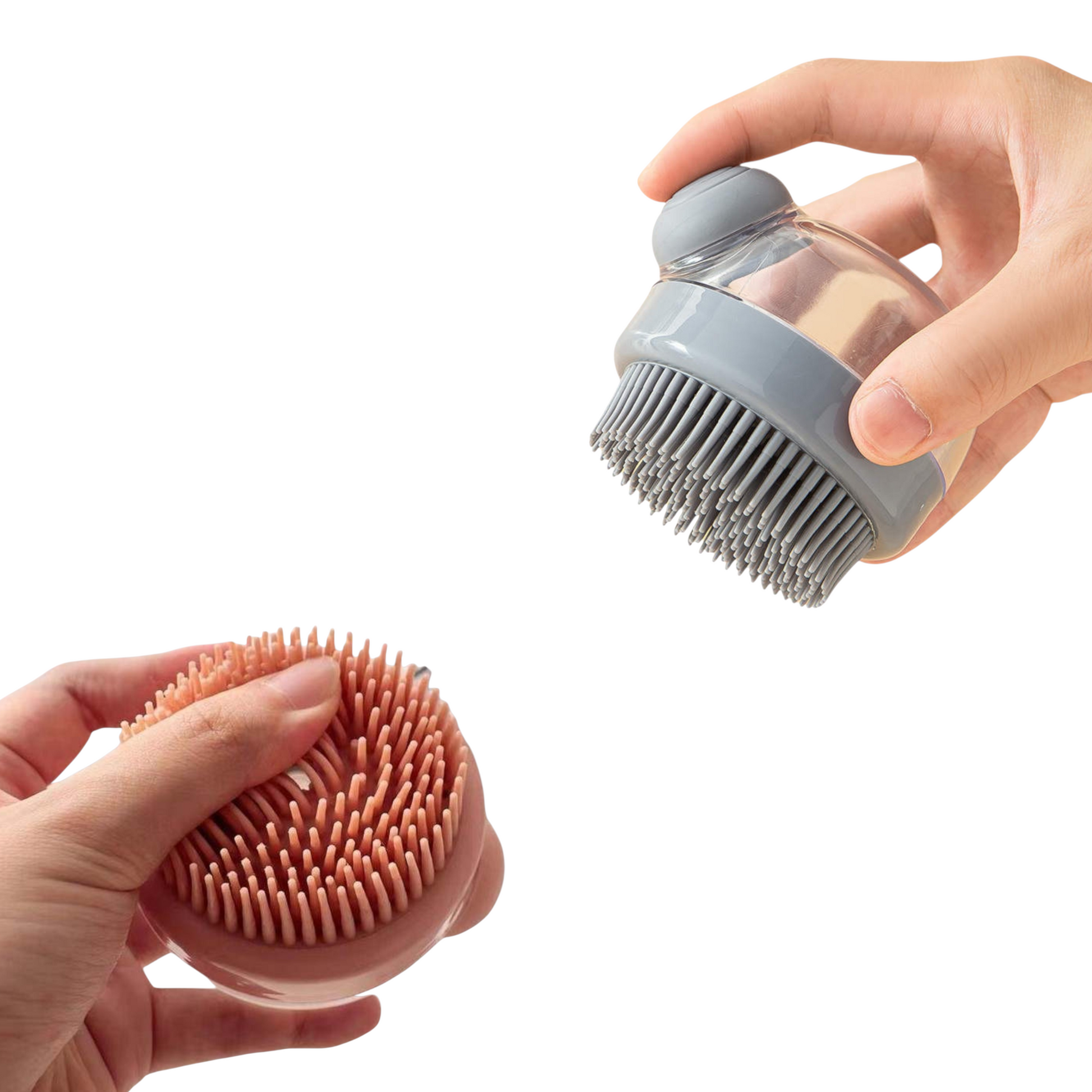 Þægilegur sílikon bursti sem getur einfaldað margt. Hann kemur með sápuhólfi þar sem þér nægir að þrýsta á loftþrýstingslokið til þess að hann skammti þér sápu. Við bjóðum svo uppá tvær gerðir. Annarsvegar 100 hára útgáfu sem kemur með fíngerðum sílikon hárum og er hentugur á líkama og hinsvegar 50 hára útgáfu með grófum hárum og er hentugur fyrir hársvörð.