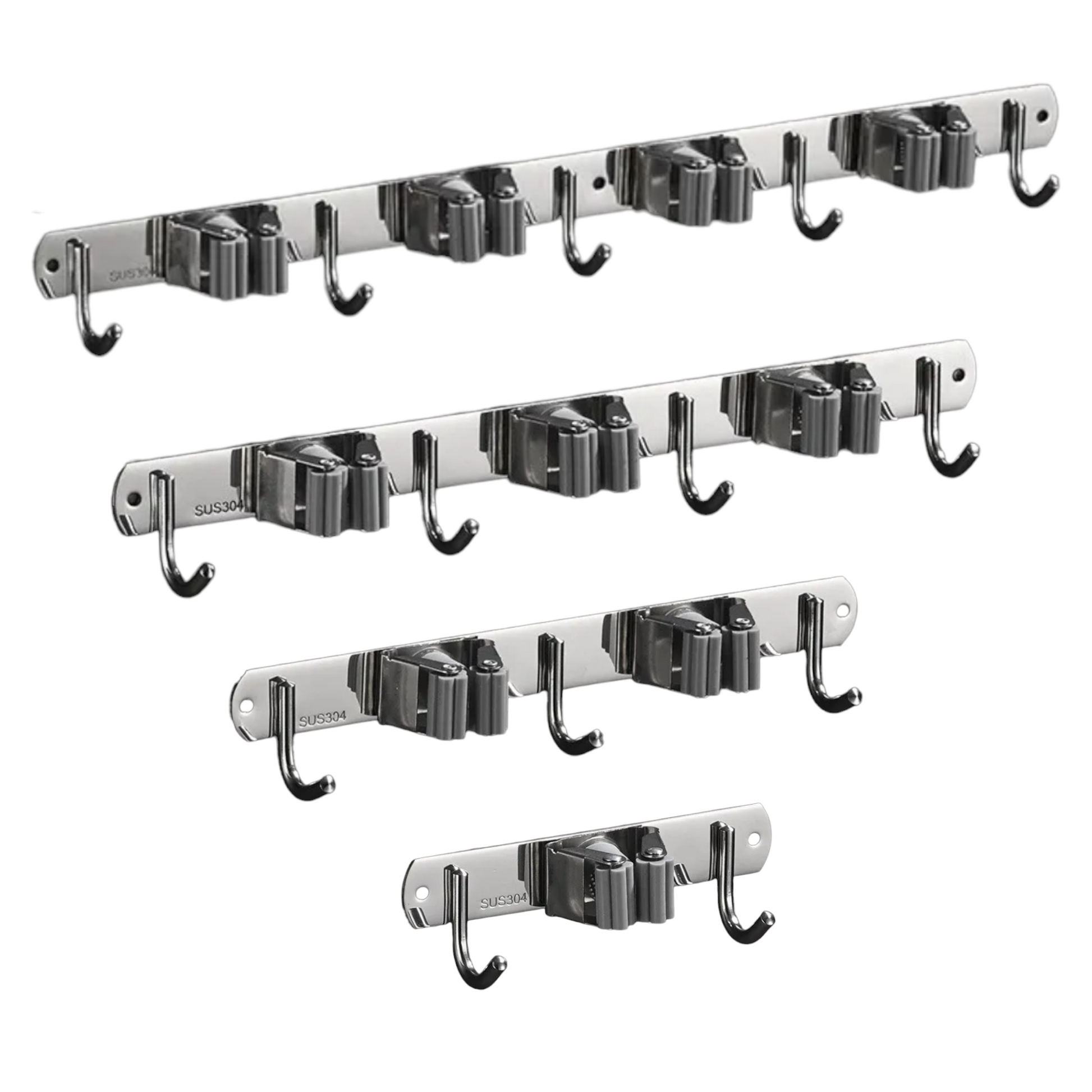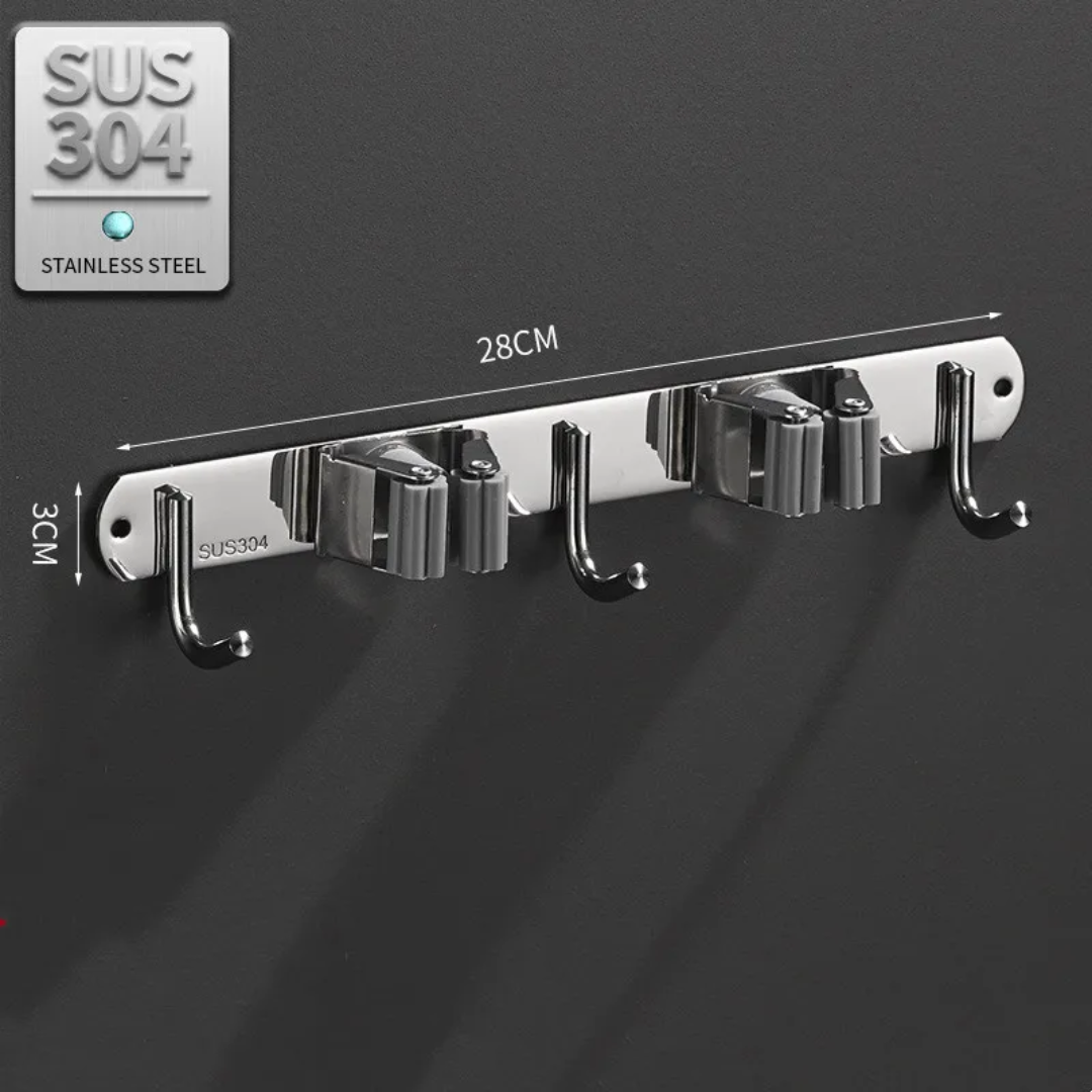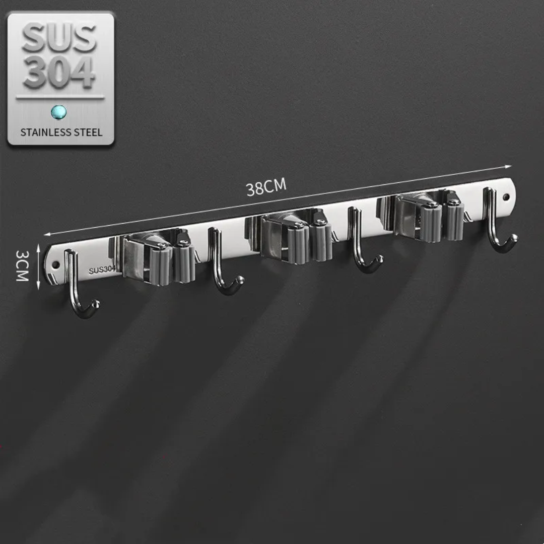 Hengi sem eru hugsuð fyrir sköftin og þriftólin á heimilinu. Hengin eru úr 304 stáli og koma með skrúfum og töppum.
