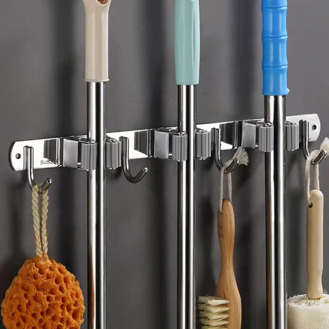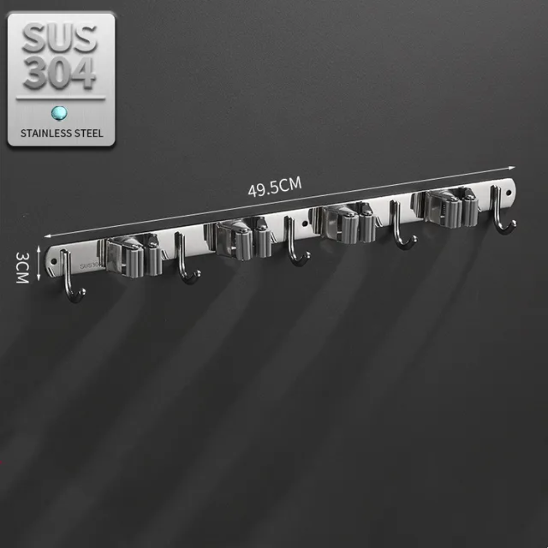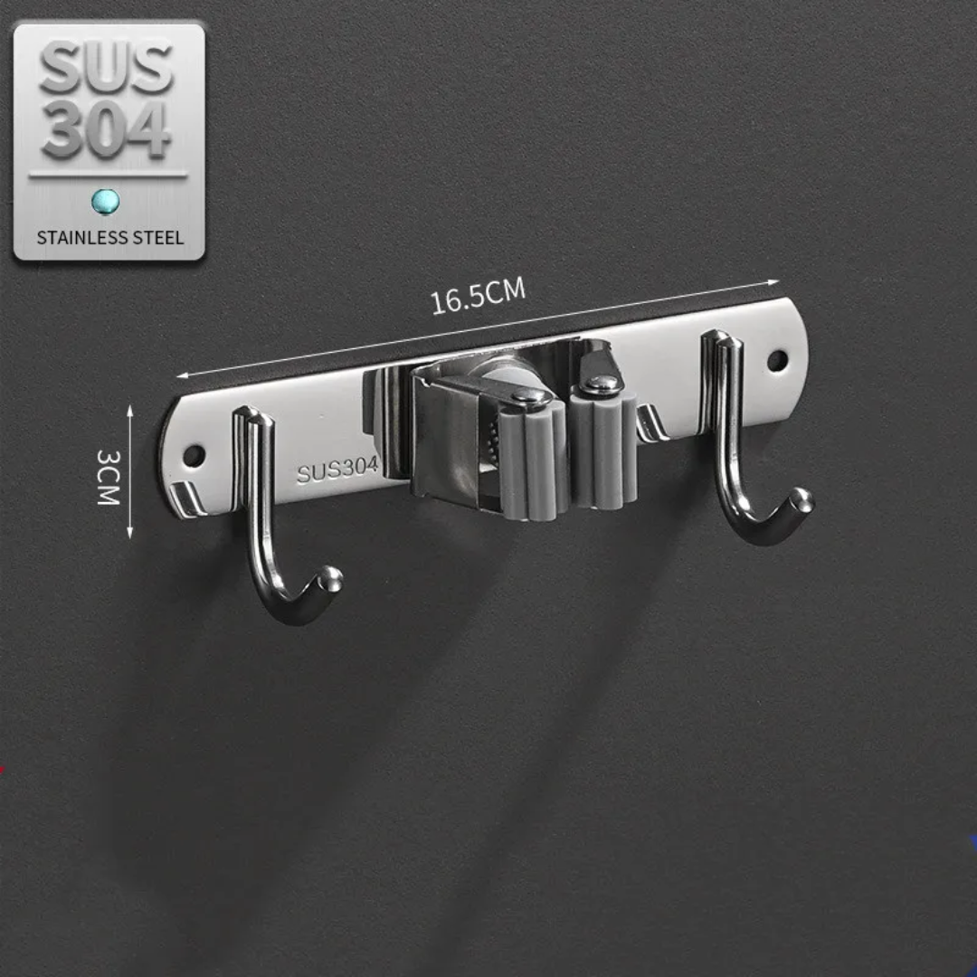 Hengi sem eru hugsuð fyrir sköftin og þriftólin á heimilinu. Hengin eru úr 304 stáli og koma með skrúfum og töppum.