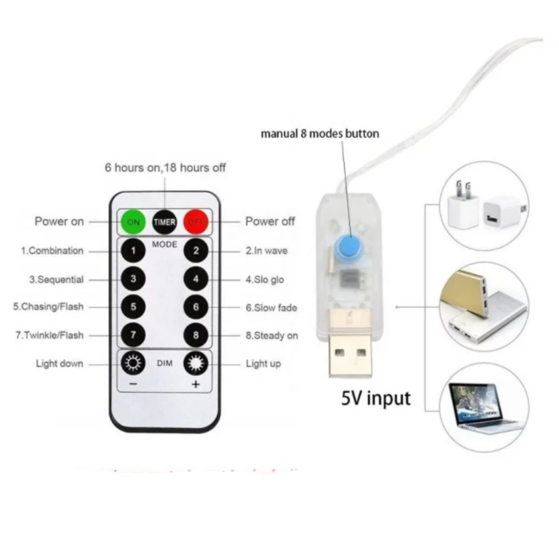 LED sería sem er sérstaklega hönnuð fyrir gardínur. Serían kemur með fjarstýring sem bíður uppá 7 þemu stillingar og dimmer. USB snúran á henni er 3 metrar þannig þú komist vandræðalaust að rafmagni. Serían sjálf er svo ekki bundin við nákvæma hæð gardínunnar þar sem auðvelt er að tvöfalda eða bretta uppá seríuna.