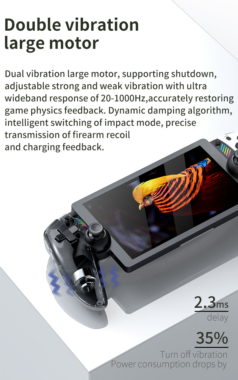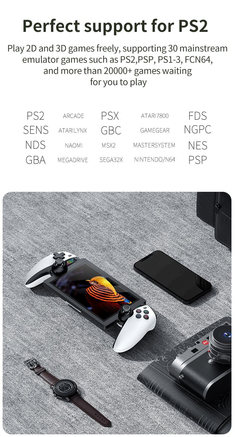 Hágæða leikjavél sem inniheldur yfir 20.000 leiki úr hátt í fjórða tug leikjavéla þ.á.m Playstation 1 og 2, N64, PSP, Super Nintendo, Game Boy color o.fl. Þessi vél er einstök að öllu leiti þar sem hönnunin er einstök og innbyggða leikjasafnið er á öðru stigi en vaninn er á í svona vélum. Innviði hennar er stútfullt af gæðum eins og hraður og öflugur ARM cortex A75 örgjörvi ásamt stóru og endingargóðu batteríi, björtum 7.1'' IPS skjá og Linux kerfisviðmóti. Þetta er vélin sem þú getur ferðast með hvert sem er án þess að fá leið á vegna risa, gæða leikjasafnsins!