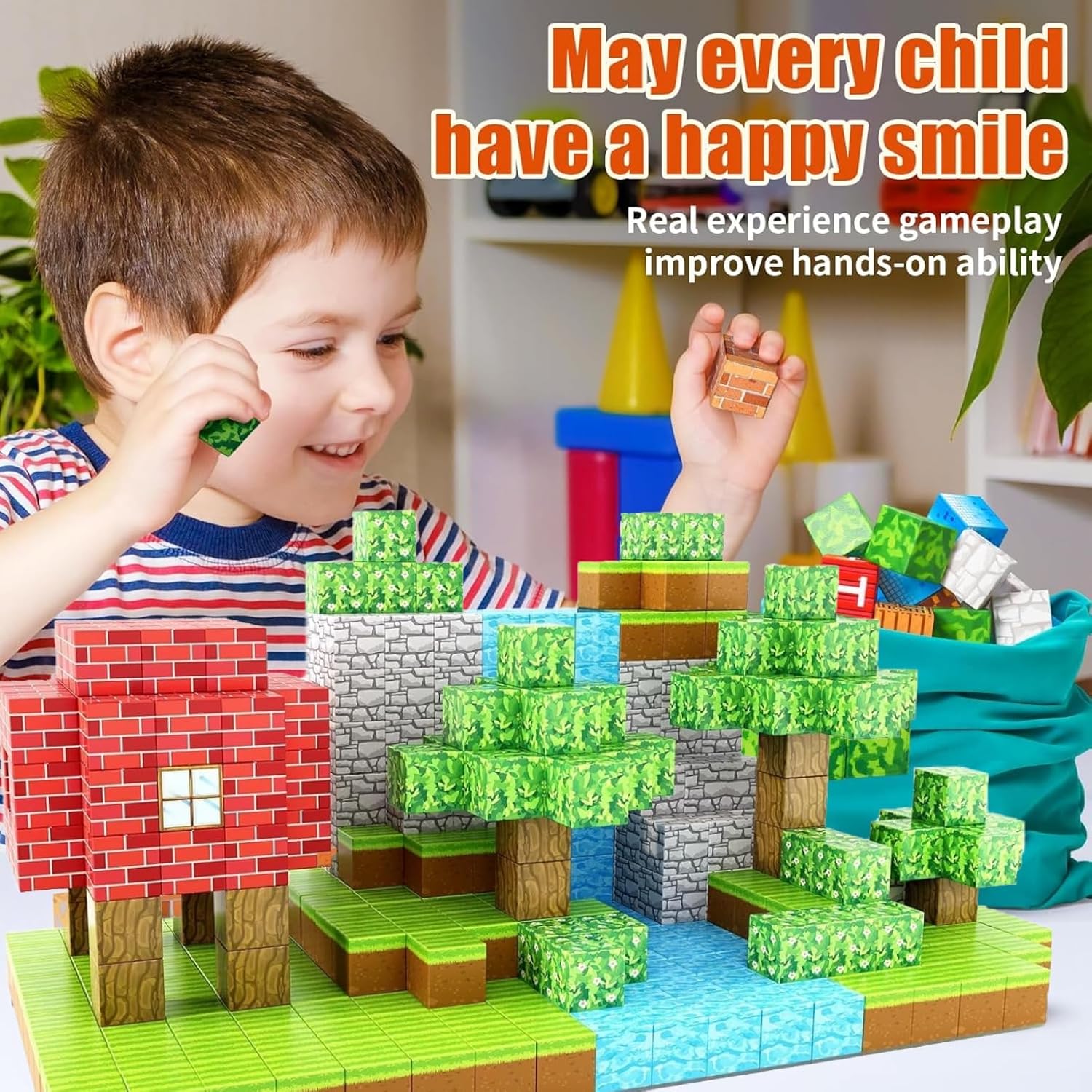 Segulkubbasett sem vekur Minecraft heiminn til lífsins. Nú geta börnin smíðað sinn eigin heim eins og í leiknum, nema nú með berum höndunum. Þetta er leikur sem sameinar tæknilega hugsun og skapandi gleði og býr til fullkomið jafnvægi milli skemmtunar og lærdóms. Kubbanir eru með öruggum, rúnuðum brúnum ásamt sterkum seglum sem halda kubbunum stöðugum og gerir fólki auðvelt að byggja, brjóta niður og endursmíða aftur og aftur.