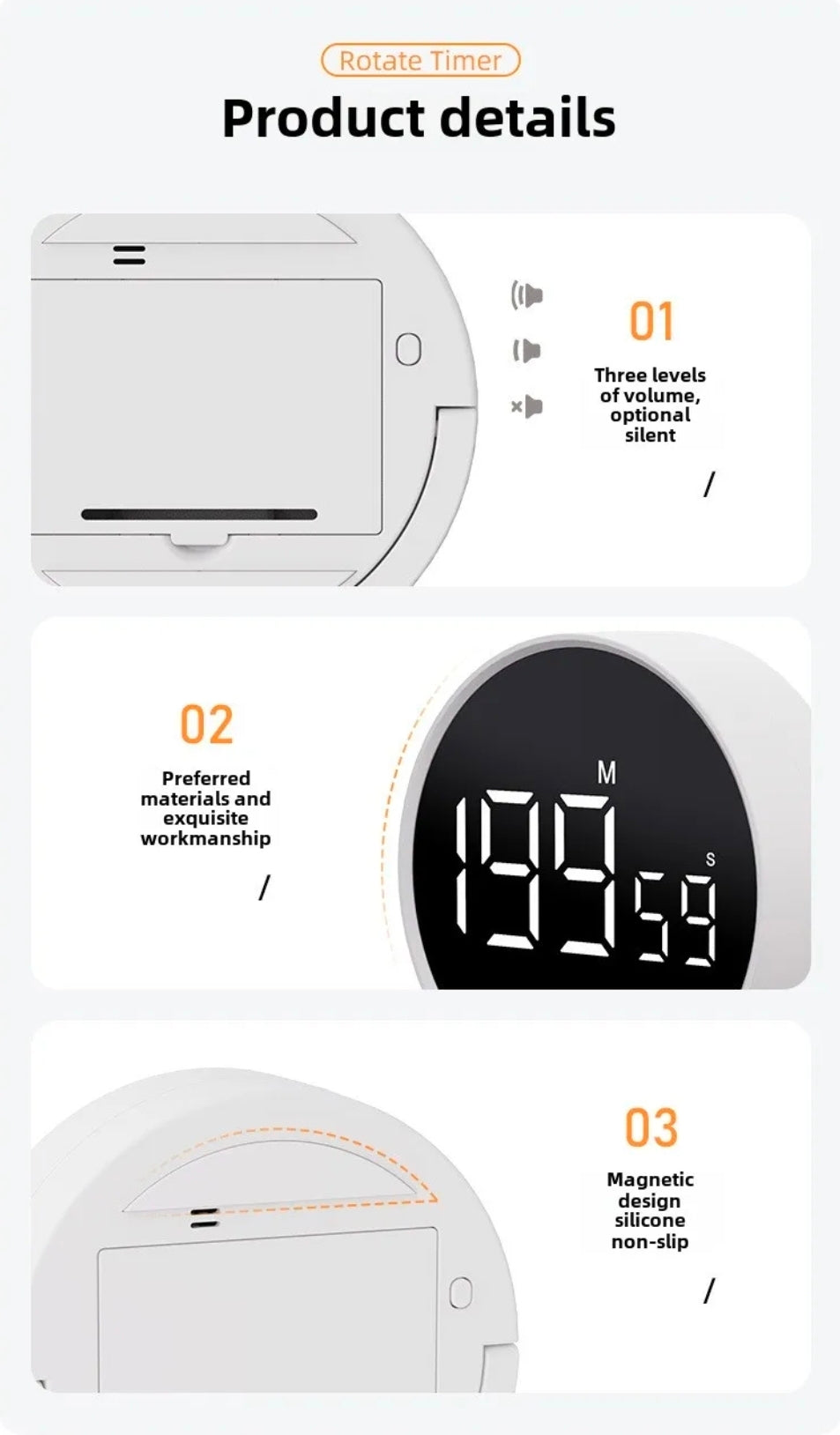 Einfaldur og lausnamiðaður tímamælir sem hentar fyrir ýmis tilefni. Stilltu tímann með einföldu snúningshjóli og fylgstu með björtum skjá sem sýnir bæði mínútur og sekúndur. Segulfestingin að aftanverðu gerir manni auðvelt að koma honum fyrir á þægilegum stað eins og t.d ískáp eða aðra hluti með málm. Tímamælirinn telur frá 0–199 mínútum og hentar jafnt við eldamennsku, heimanám, líkamsrækt eða jafnvel rannsóknarvinnu.