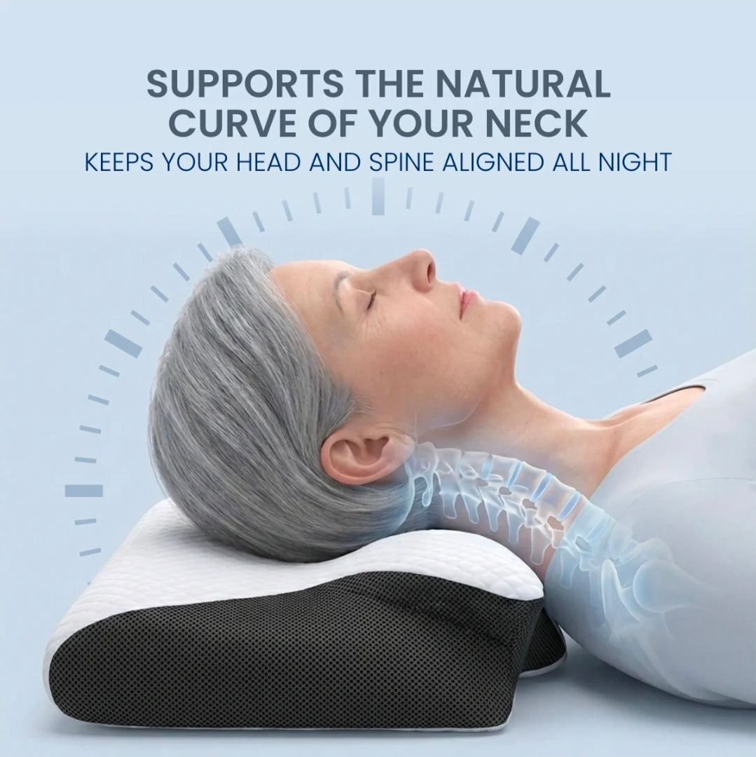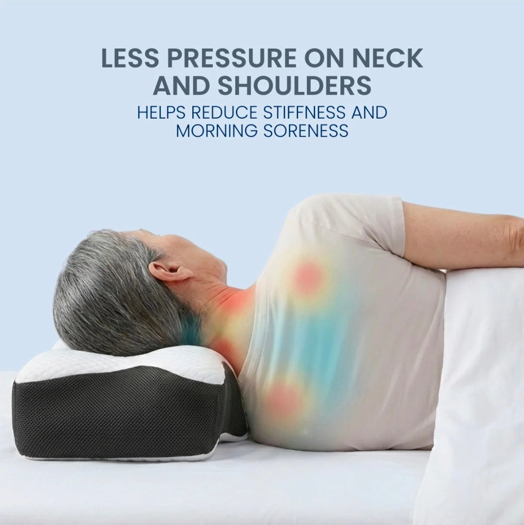 Vaknarðu með stífan háls, þreyttar axlir eða tilfinningu um að efra bakið falli saman í svefni? Þessi ergónómíski heilsukoddi er úr minnisfroðu og er hannaður til að styðja náttúrulega sveigju hálshryggjar og hjálpa líkamanum að halda beinni línu frá höfði og niður hryggjarsúlu, sérstaklega þegar þú sefur á hlið eða baki.