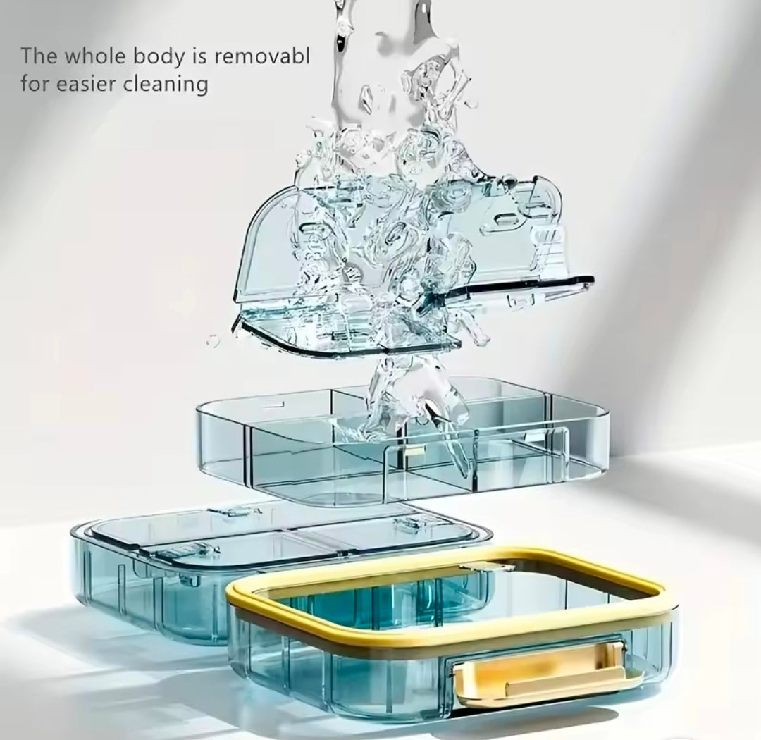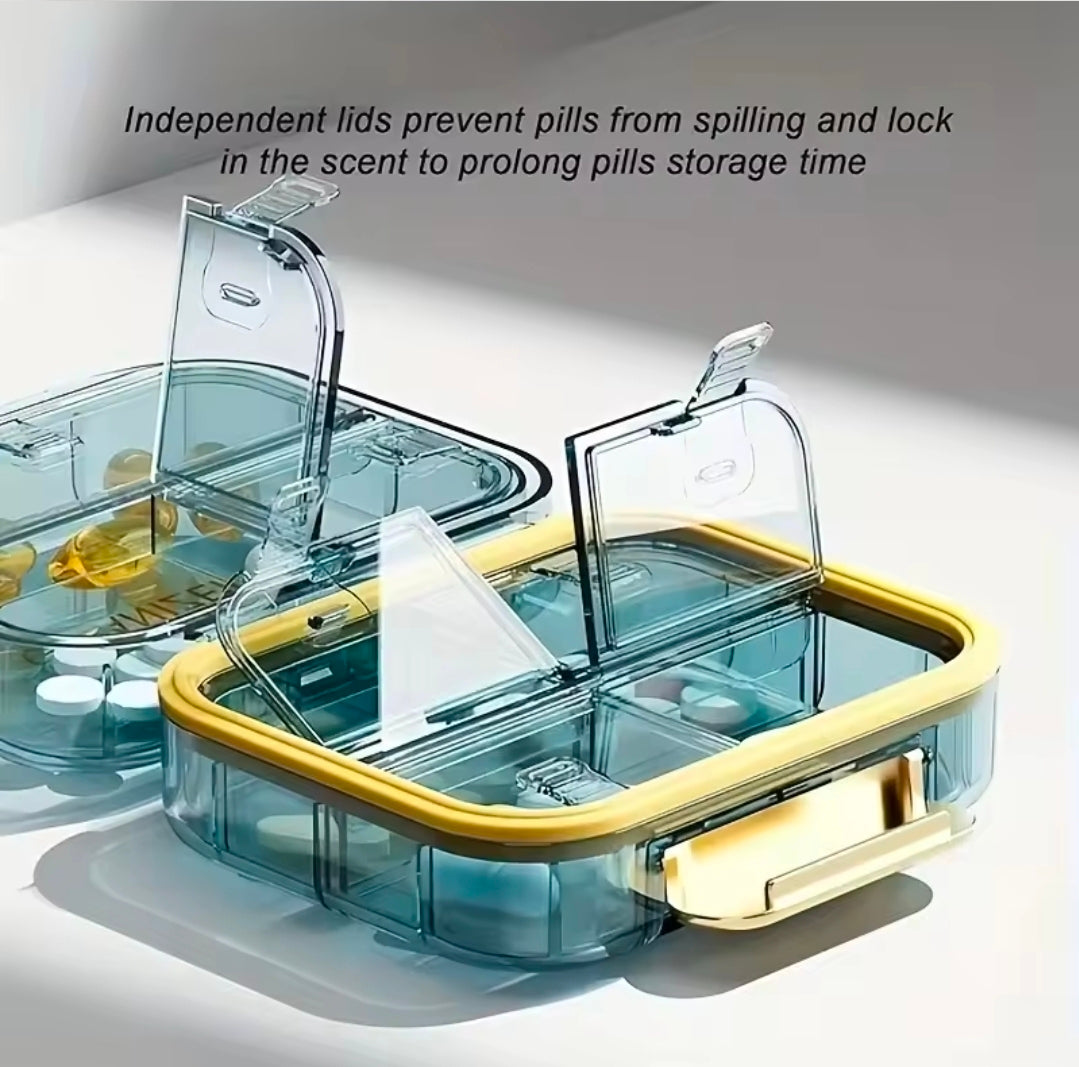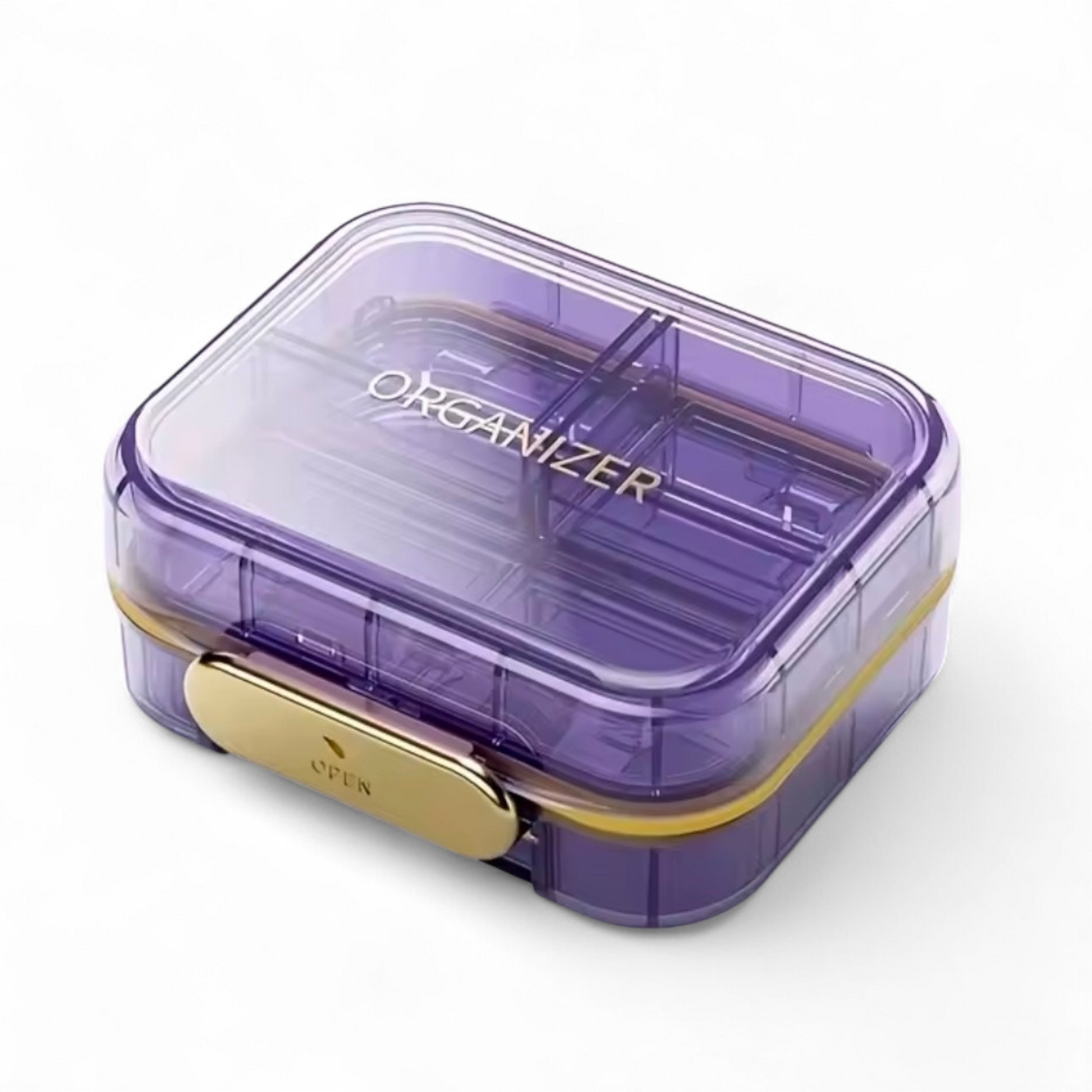7 hólfa lyfjabox sem er bæði loftþétt og vatnshelt. Hólf og skilrúm eru losanleg eftir þörf og sterkbyggð umgjörðin sér til þess að það fari vel um það á ferðalaginu.