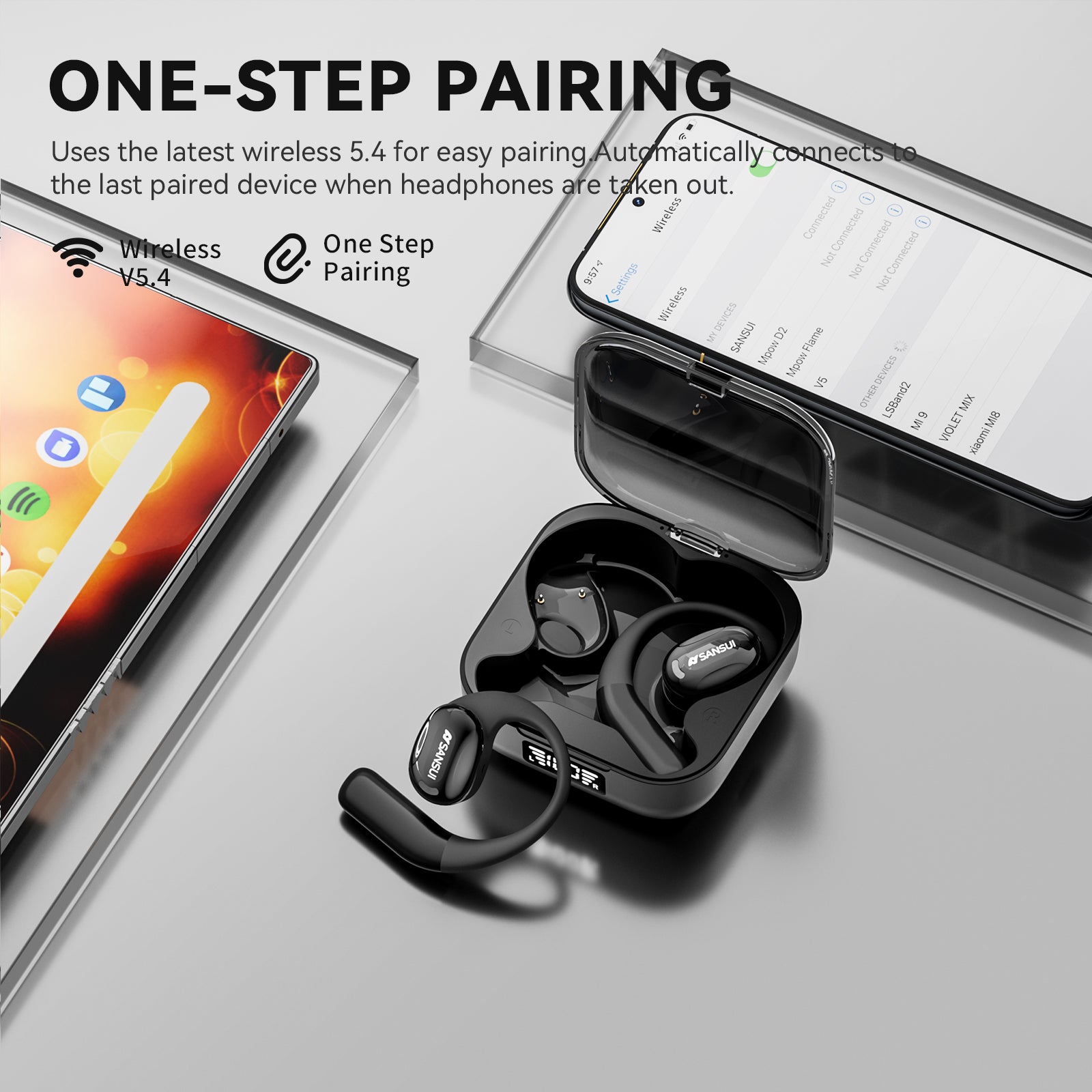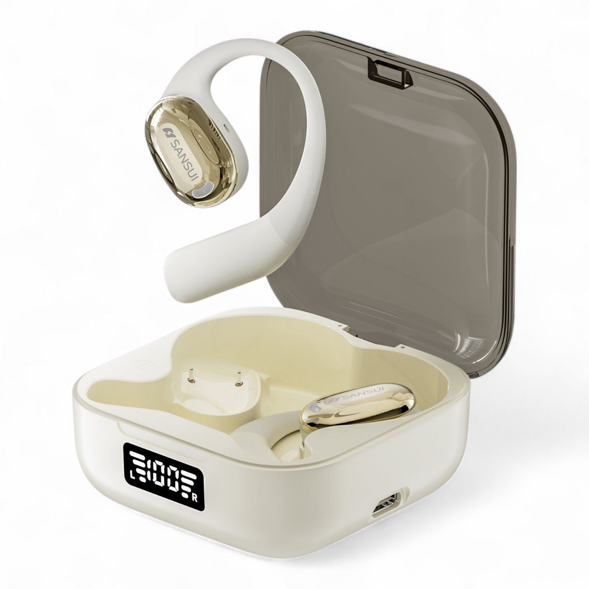 Nýjasta flaggskipið í heyrnartólum frá Sansui sem er ný og endurbætt útgáfa af TW93 tólunum. Tólin eru sérstaklega hönnuð fyrir þá sem vilja fá almennilega festingu yfir eyrun og eiga í minni hættu á að missa þau úr eyrunum ásamt því að geta heyrt í umhverfinu líka. Tólin koma með öflugri bluetooth 5.4 flögu sem tengist tækinu samstundis og tekið er úr boxinu. Þau bjóða uppá tæran og góðan hljóm sem og þéttan bassa. Einnig koma þau með öflugu batterísboxi með display skjá sem getur fullhlaðið heyrnartólin allt að þrisvar sinnum en hver hleðslu tekur um 1.5 klst og endist í allt að 9 klst.