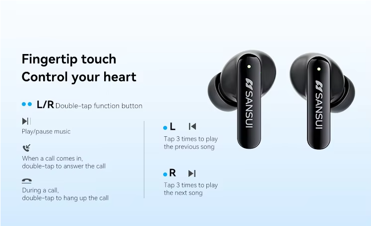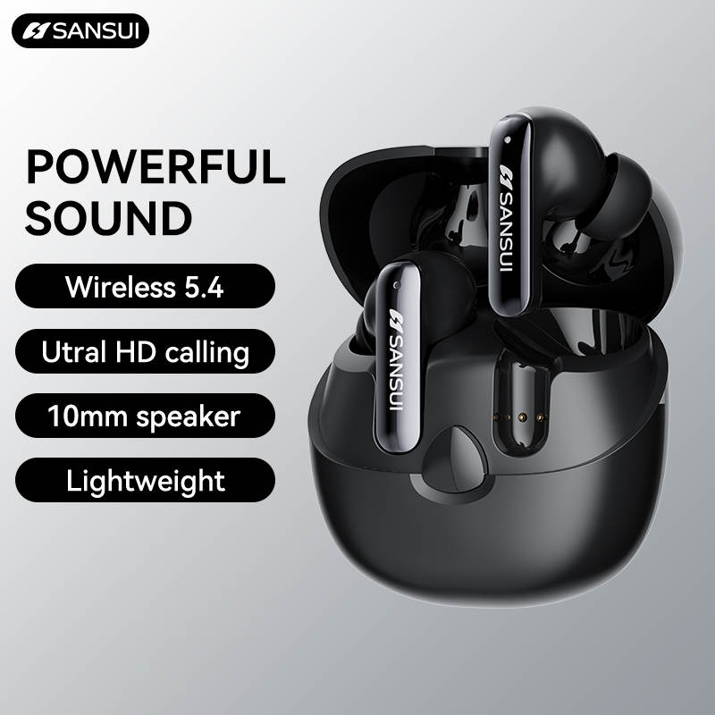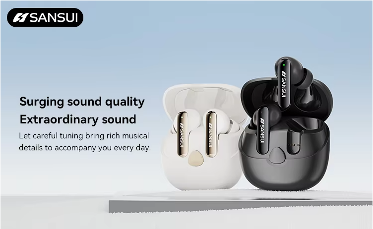 Gæða heyrnartól frá Sansui sem koma í klassísku útiti og hönnuð til að endast. Tólin koma með öflugri bluetooth 5.4 flögu sem tengist tækinu samstundis og tekið er úr boxinu. Þau bjóða uppá tæran og góðan hljóm sem og þéttan bassa. Einnig koma þau með öflugu batterísboxi sem getur fullhlaðið heyrnartólin allt að 3x en hver hleðslu tekur um 1.5 klst og endist í 6-7 klst. Þrír mismunandi eyrnapúðar fylgja svo hver og einn geti fundið það sem hentar sér.