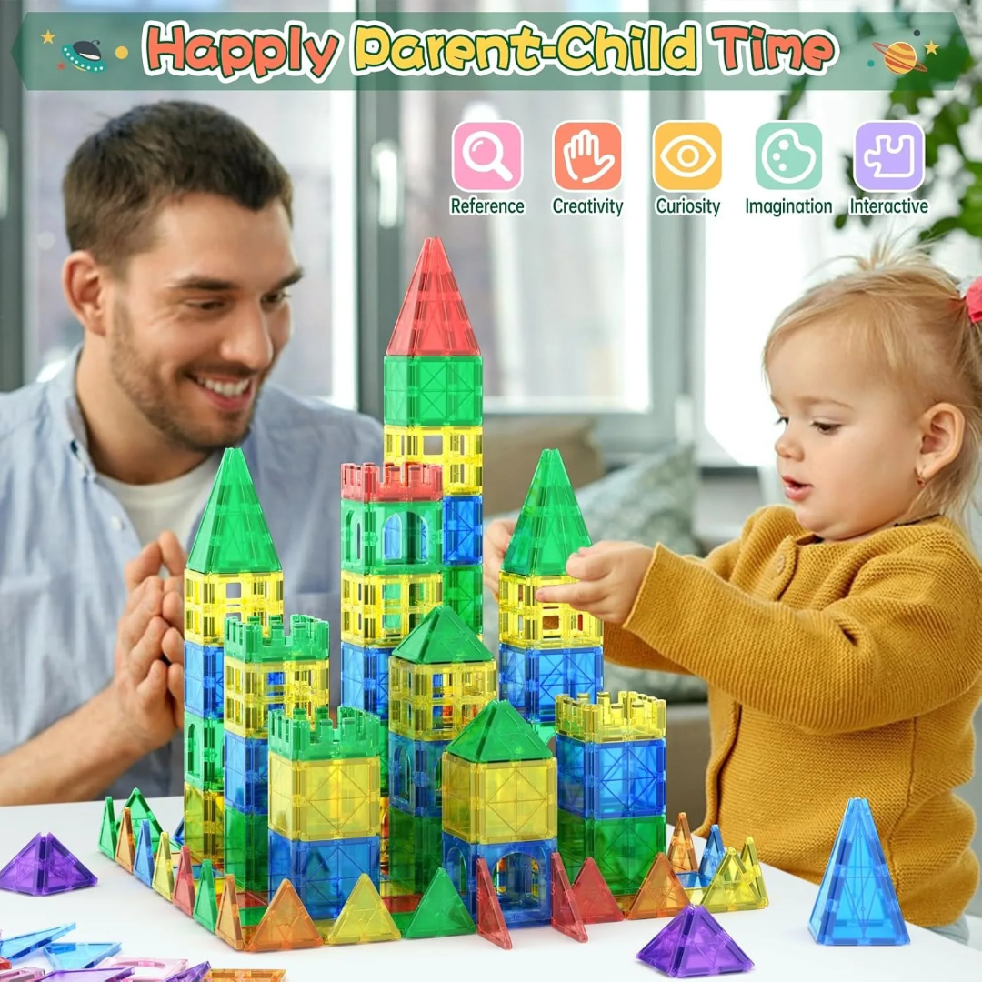 Segulkubbasett sem fær foreldrana til að slást með í leikgleðina. Opnaðu fyrir sköpunargleðina með segulkubbasetti sem sameinar skemmtun og þroska á náttúrulegan hátt. Kubbanir tengjast auðveldlega með sterkum seglum sem gera börnum kleift að byggja kastala, dýr, bíla og allt sem hugmyndaflugið nær yfir. Þeir örva ímyndunarafl, rýmisskyn, litaskilning og hreyfifærni, á meðan leikurinn eflir samvinnu og þolinmæði. Þétt hönnun með öruggum, rúnuðum brúnum og ultrasonic suðu sem tryggir endingu og öryggi. Fullkomið fyrir börn og frábær leið fyrir foreldra og börn að eyða gæðatíma saman í skapandi leik.