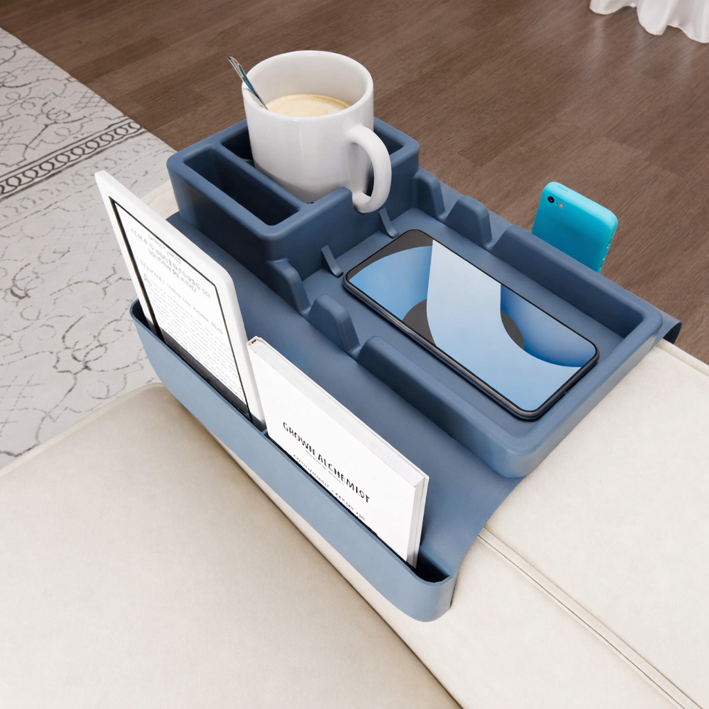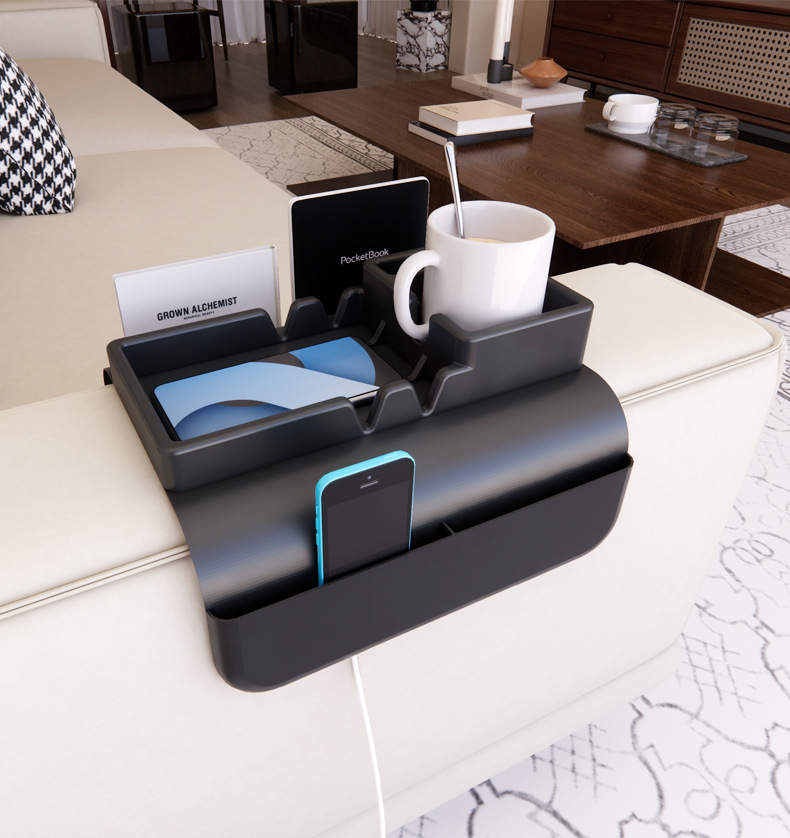 Hagnýt lausn sem umbreytir sófanum eða rúminu í skipulagða og þægilega aðstöðu. Þessi skipuleggjari er hannaður til að halda utan um allt það helsta þegar maður kemur sér í hvíldarstöðu hvort sem það sé sími, drykkjarílát, fjarstýringar, bækur eða annað slíkt.