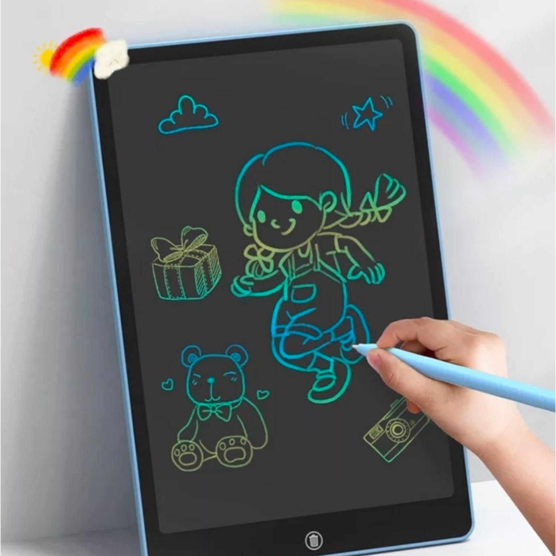 Skriftafla fyrir börnin, listamanninn eða krotarann. Tilvalið í ferðalagið eða til að gleyma sér í og svo þurrkar maður út skrifin með einum takka. Töflurnar koma í 3 stærðum og eru marglita eftir því hvar þú krotar á skjánum,
