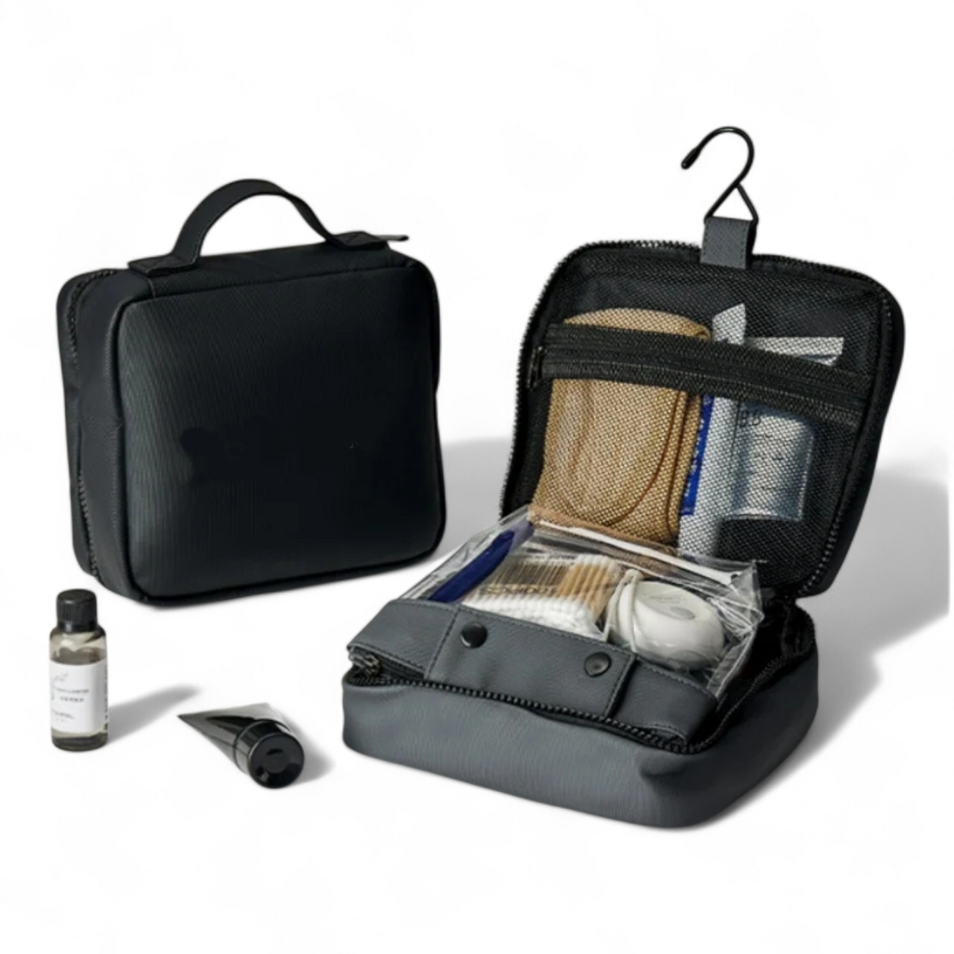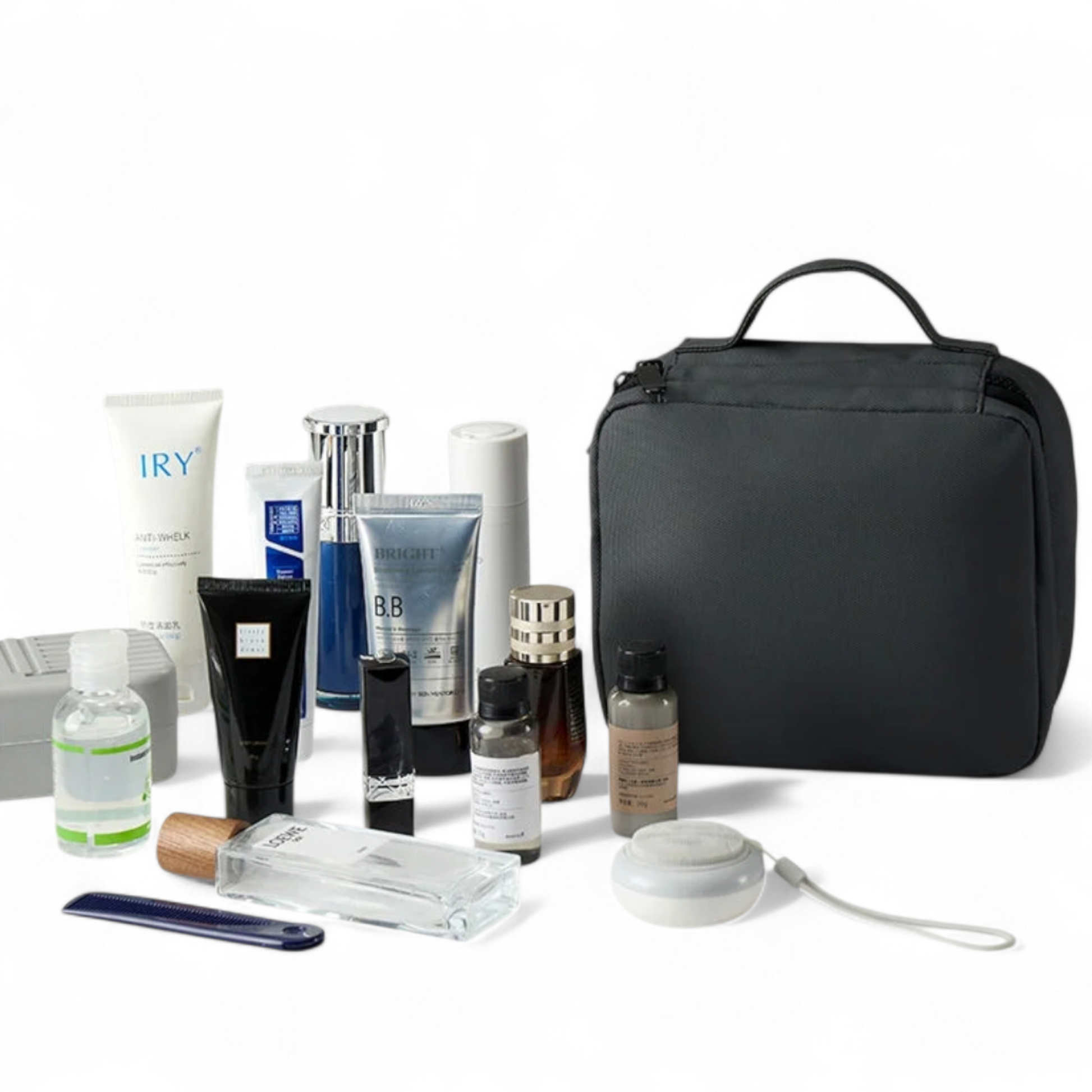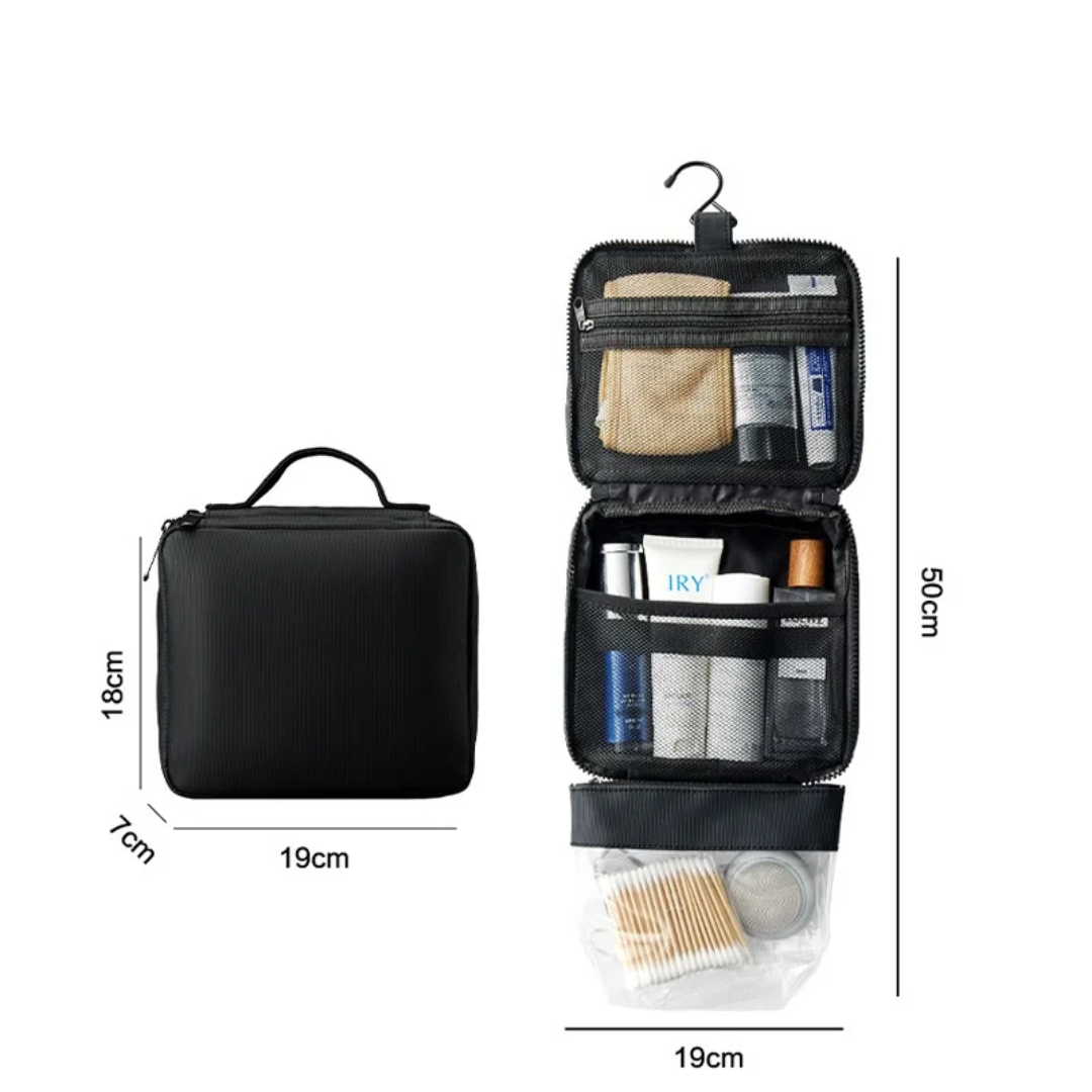 Lítil og nett snyrtitaska sem rúmar það helsta sem maður þarf með sér á flakkið. Hún kemur með hengi og tvöfaldri opnun. Einnig er hún með losanlegu, glæru hólfi sem er tilvalið undir smærri snyrtivörur.