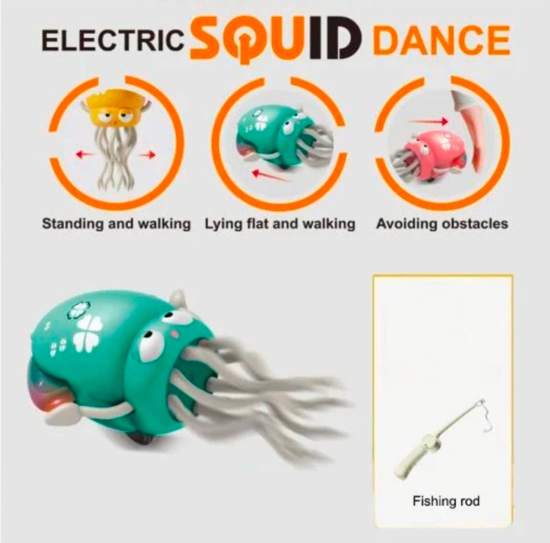 Smokkfiskurinn sem allir elska, meira að segja gæludýrin á heimilinu. Þessi smokkfiskur er enginn venjulegur smokkfiskur. Hann spriklar eftir gólfinu á gripörmunum sínum ásamt því að hann á það til að taka léttar danshreyfingar sem fá lítil augu til að undrast. Hann spilar lög ásamt því að innbyggð lýsingin hreyfist í takt við danshreyfingarnar. Þessi er stórskemmtilegur og einstakt leikfang sem á að eiga heima í öllum barnaherbergjum.