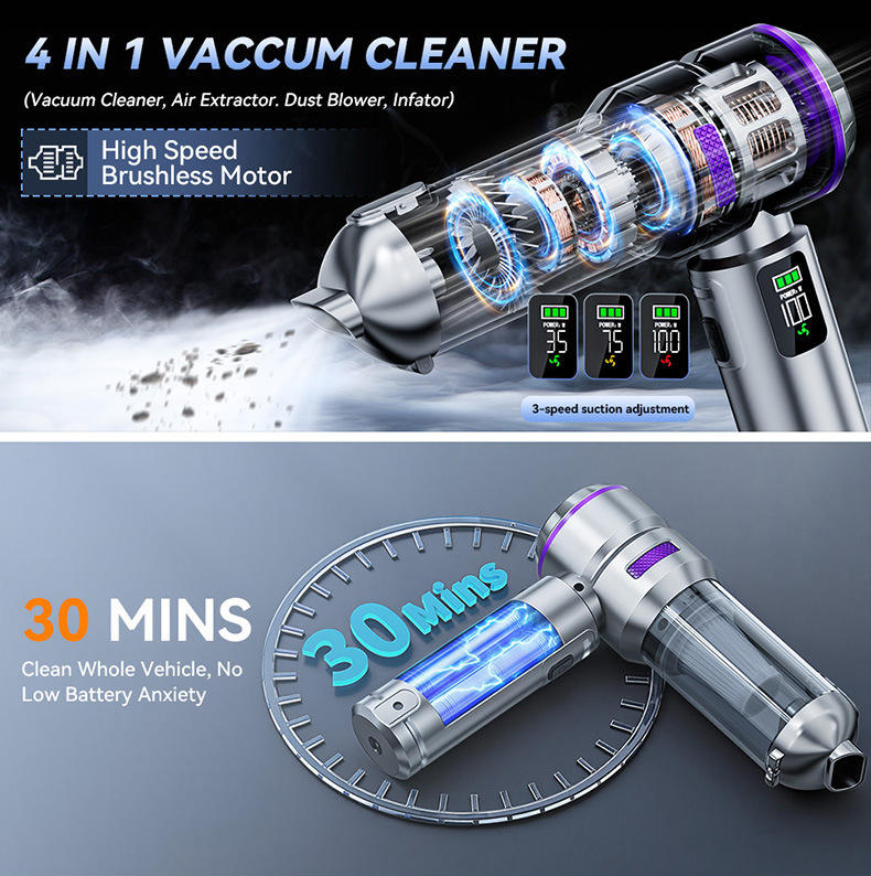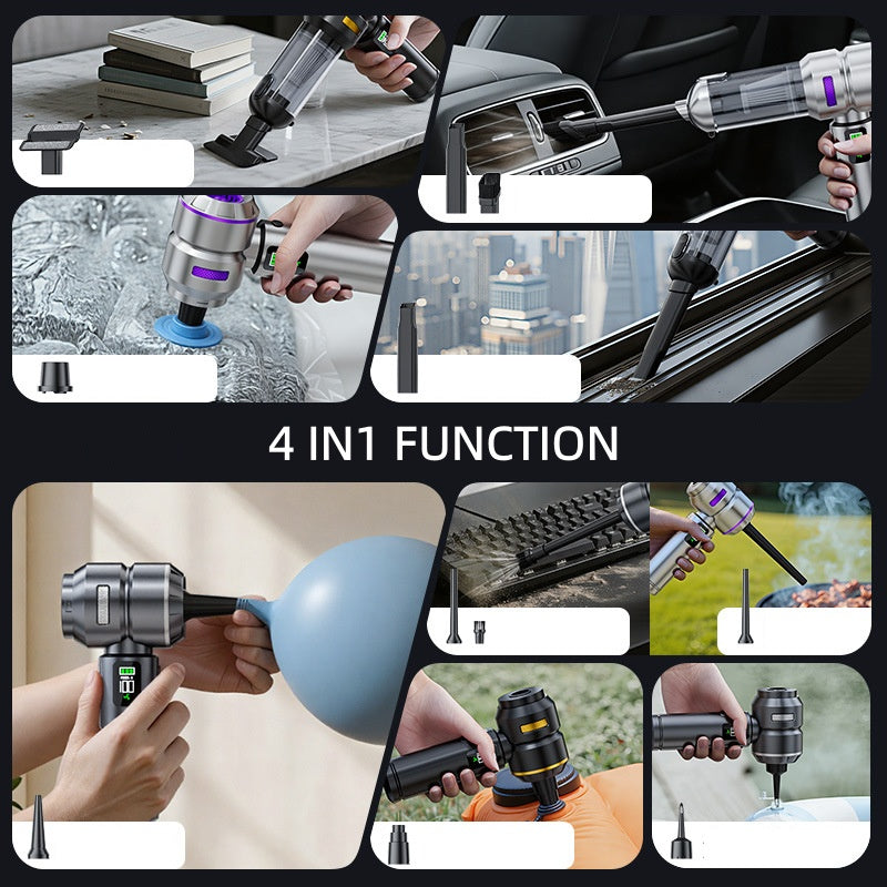 Græjan samanstendur af ryksugu, útblæstri og lofttæmingu sem er öflugri en flest önnur tæki í hennar stærðargráðu. Hún er fullkomin í hjólhýsið, farartækið, ferðalagið eða heimilið og vinnur á burstalausum mótor ásamt 6000mAh batterí sem gerir hana afkastameiri. Með útblæstrinum getur þú blásið upp blöðrur, loftdýnur, sundkúta og rykhreinsað tæki og óhreinindi frá erfiðum stöðum. Með lofttæmingunni er svo hægt að lofttæma t.d fatarpoka, matarpoka, loftdýnur o.fl. Möguleikarnir eru margir þar sem hún bíður uppá þríþætta þjónustu og níu mismunandi hausa til að henta fleiri verkefnum.