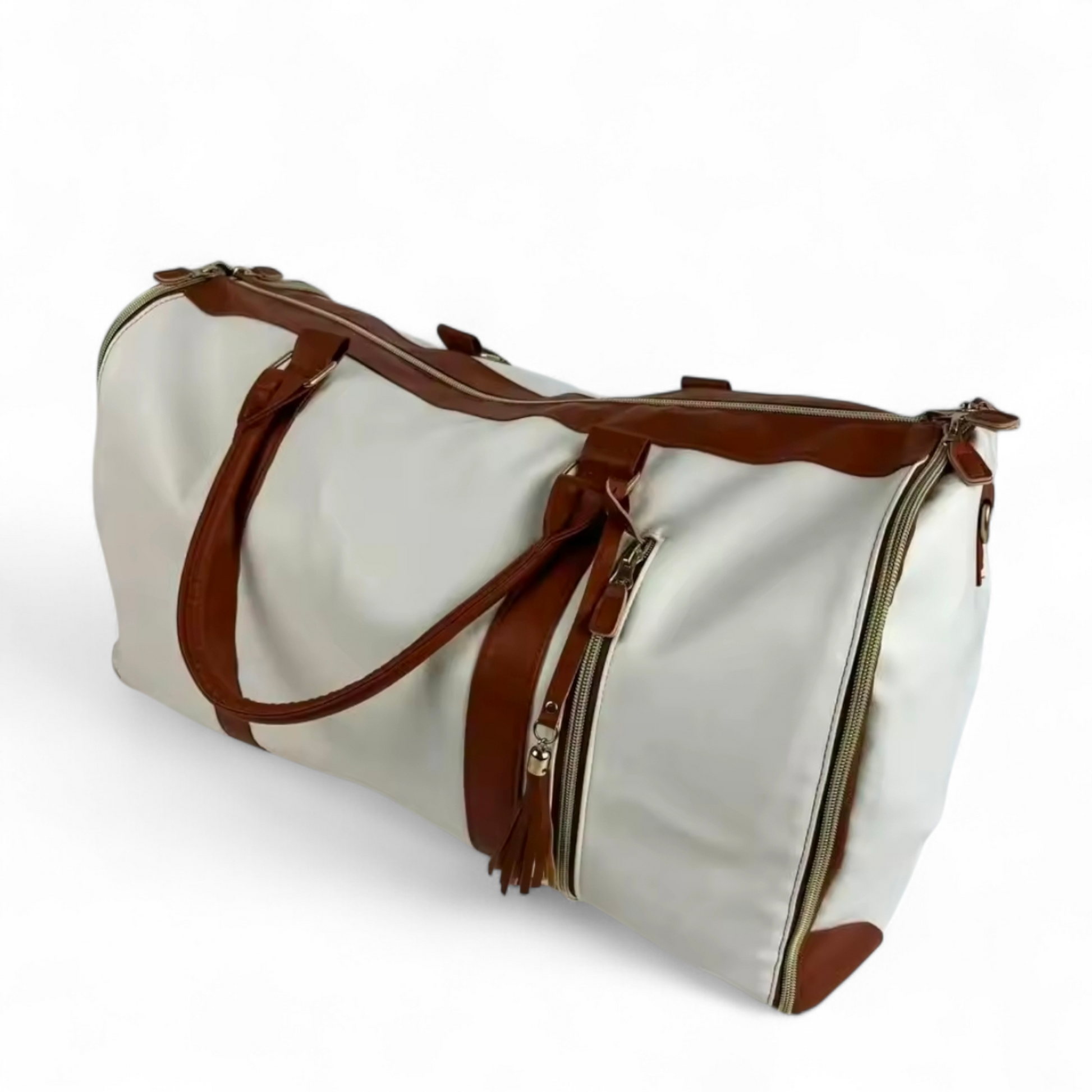 Hönnuð fyrir þá sem vilja spara sér pláss og jafnvel peninga með því að sleppa ferðatösku og reiða sig á farangurstösku á ferðalaginu sem bíður uppá mikið geymslupláss. Vatnsfráhrindandi yfirborð ver innihaldið, traustir rennilásar halda öllu á sínum stað og fjölmörg hólf gera skipulagið einfalt. Þægileg handföng og axlaról tryggja þægindi á ferðinni á meðan smáatriði í leðuráferð gefa töskunni fágað og tímalaust yfirbragð.