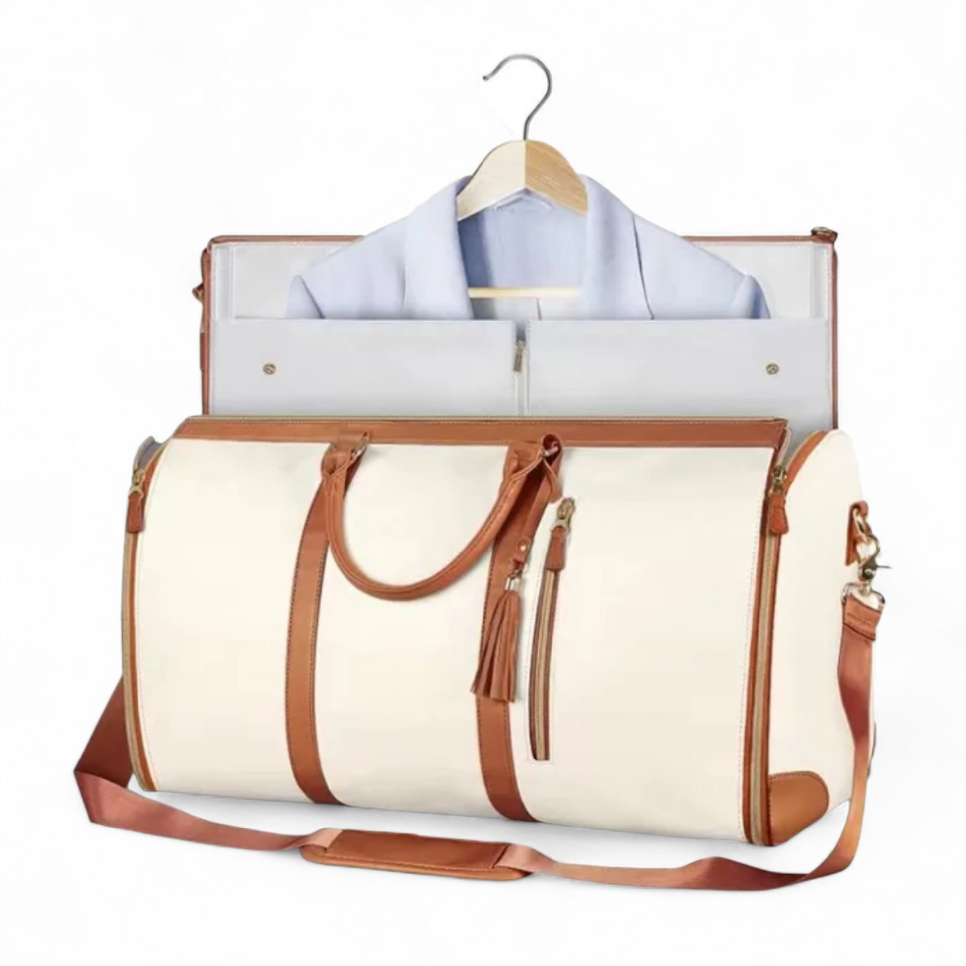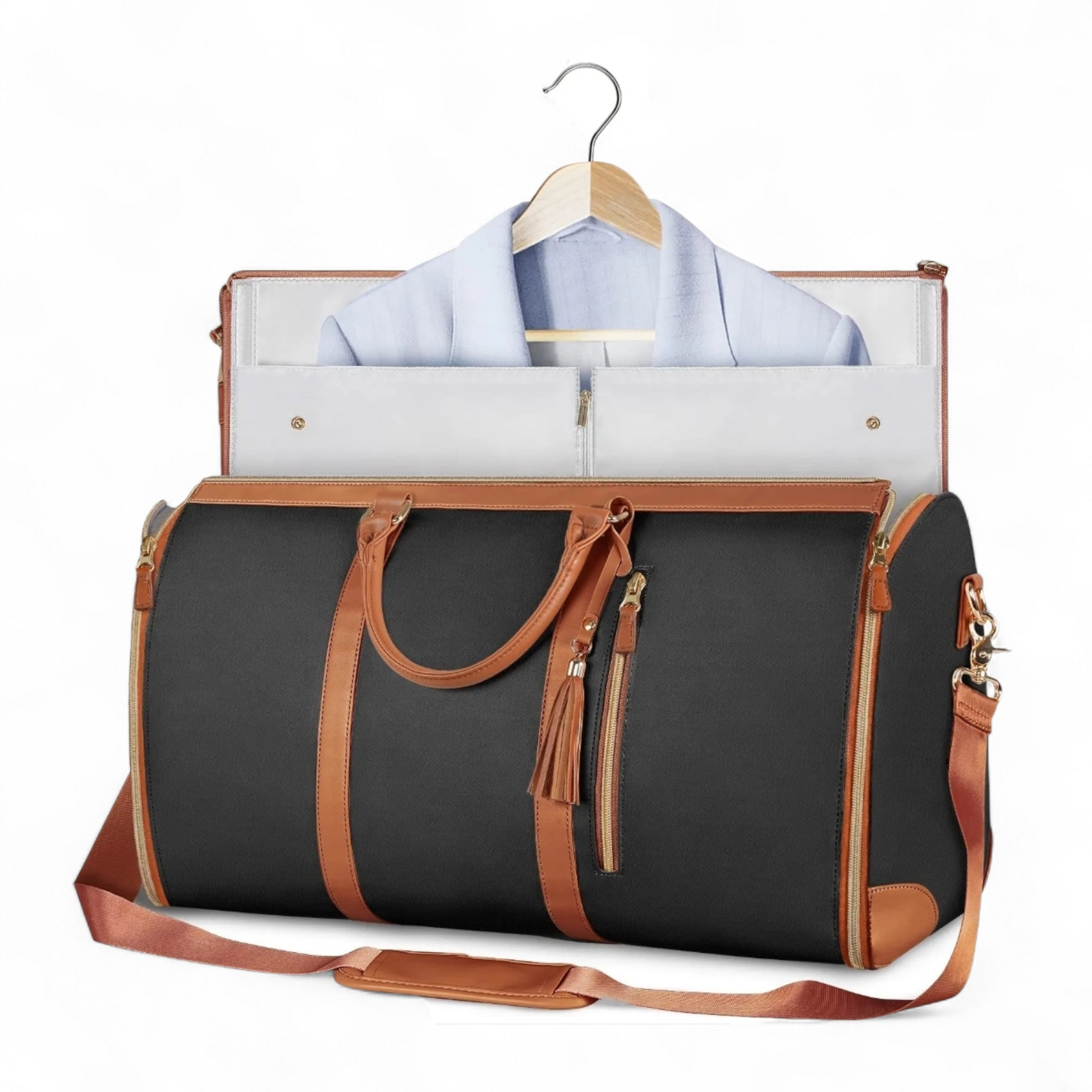 Þessi taska er engin hefðbundin taska. Hún sameinar útlit klassískrar farangurstösku og snjalla virkni ferðatösku í einni heild. Taskan opnast á öllum hliðum og breytist í skipulagða flata einingu þar sem hægt er að leggja föt snyrtilega inn í innanklæða hólf án þess að þau krumpist.