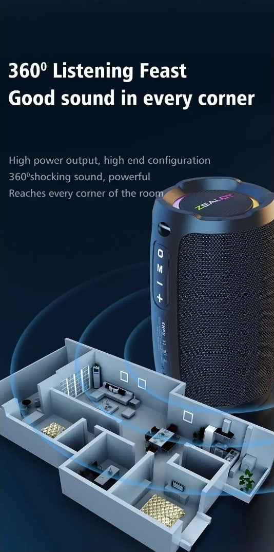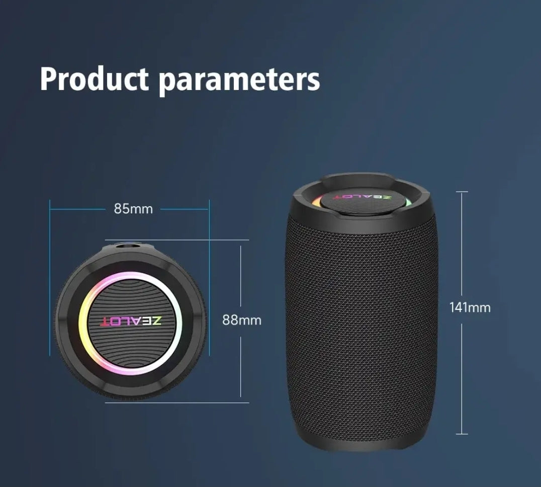 Zealot eru þekktir fyrir hágæða hljóm og gæði og Zealot S49 hátalarinn frá þeim er engin undantekning á því. Lítill og nettur tilbúin í ferðalagið en samt með hljóm sem kemur á óvart með sínum djúpa bassa og kristaltæra hjóm. Hátalarinn kemur með öflugu innbyggðu 3600mAh batteríi sem lifir í allt að 7-8 kl í stanslausri spilun og allt að 30 daga í standby mode.