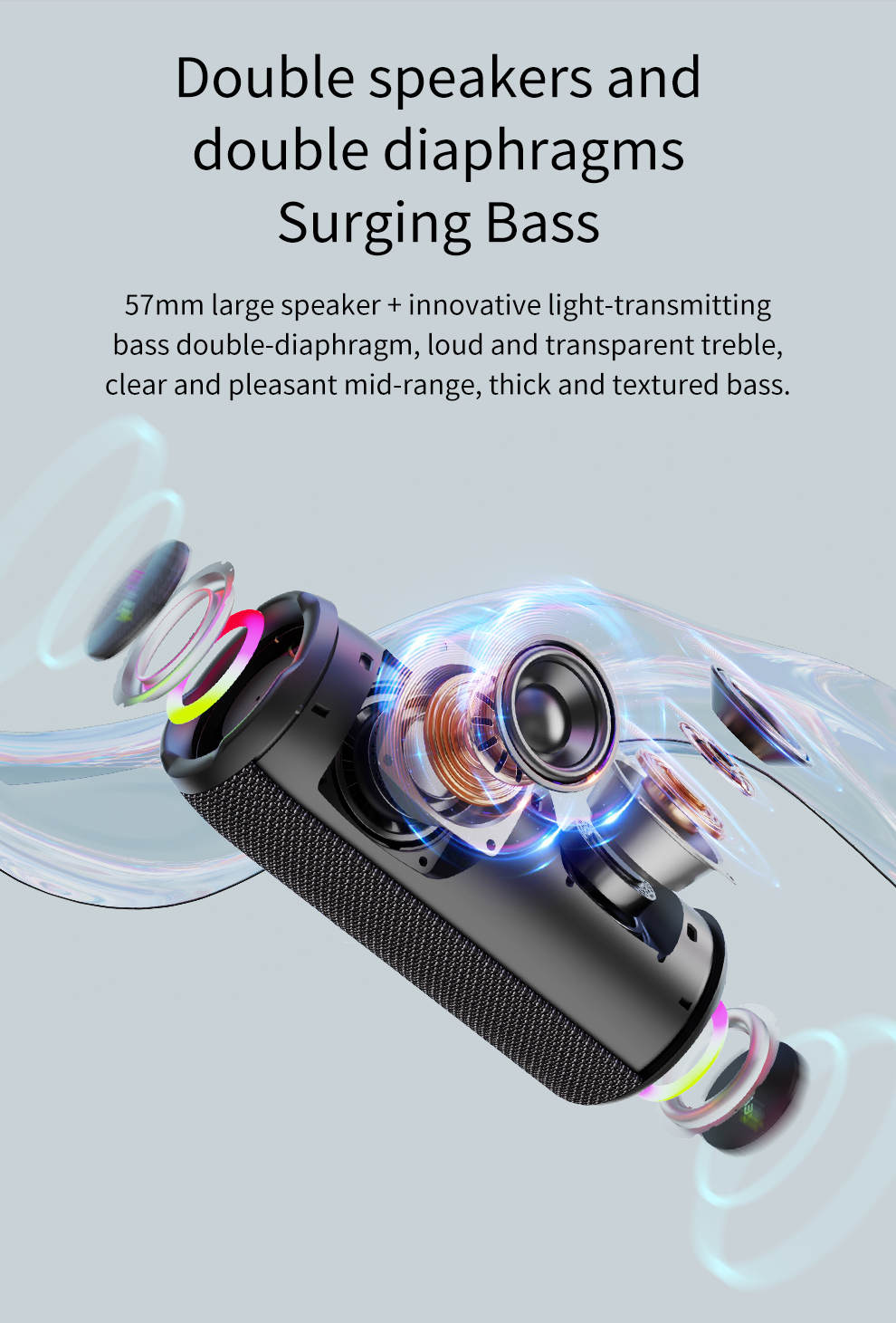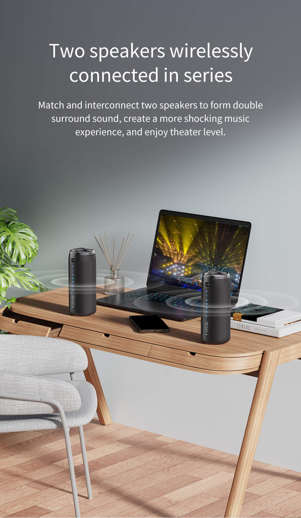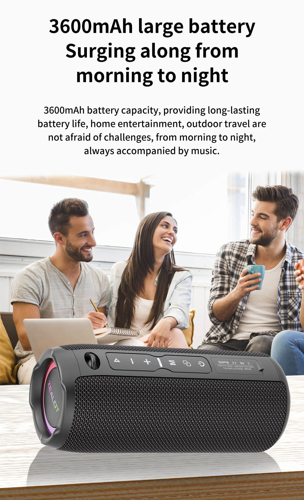 Zealot S49 PRO er ferðafélagi sem pakkar miklu í litla umgjörð. Hann sameinar öflugan 20W surround hljóm með tvöfaldri bassakeilu sem gefur dýpt og kraft í tónlistina, sama hvort þú ert heima, í ferðalagi eða úti í náttúrunni. Hátalarinn bíður uppá 5.2 bluetooth tengingu sem tryggir hraða og stöðuga tengingu ásamt því að 3600mAh batteríið sér til þess að tónlistin spili snurðulaust í allt að 8 klukkustundir og mánuð í biðstöðu. Hann er nettur, með sterku nylon yfirborði og handfangi sem gerir hann fullkominn til að grípa með sér í útilegur, fjallgöngur eða einfaldlega á pallinn.